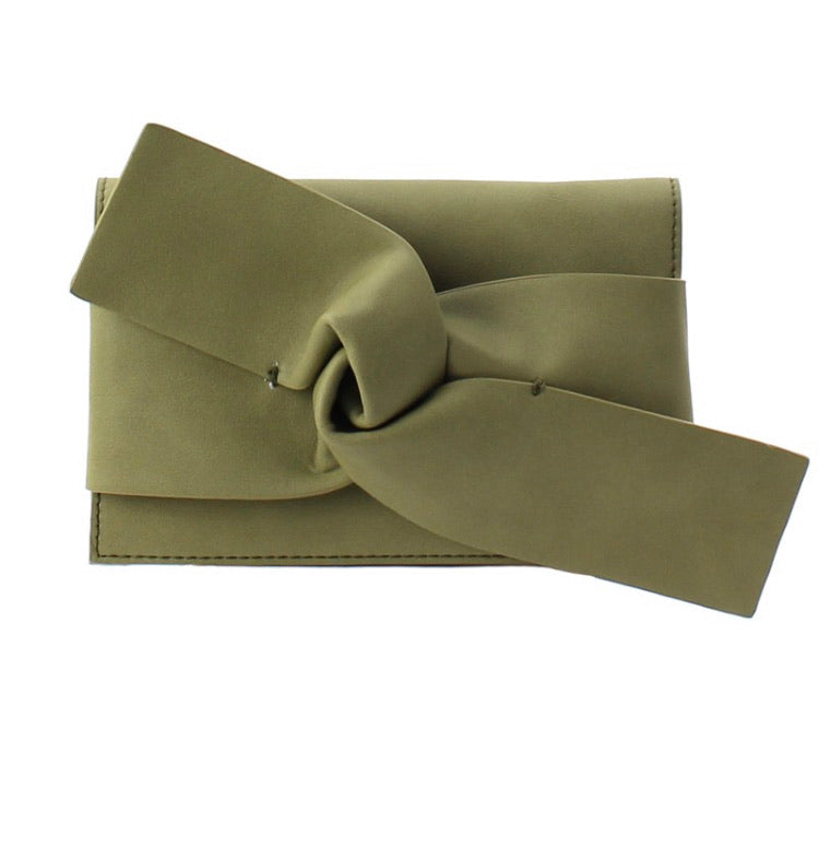 This bow clutch is a cute statesmen piece. Carry it in your hand on or place the straps on and place it on your shoulder.