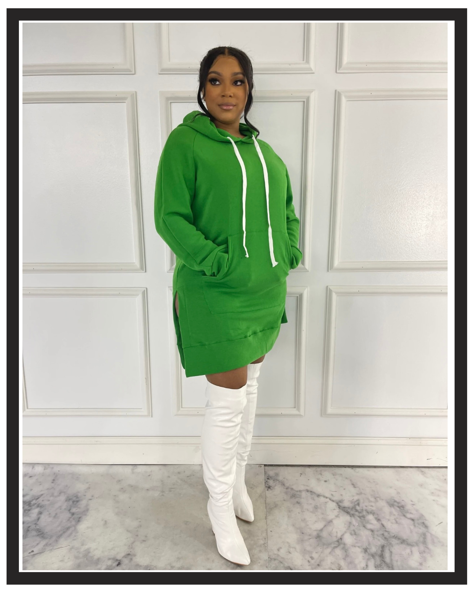Hoodie Fleece Dress with Side Slit. Super Cozy,Comfortable and Cute.